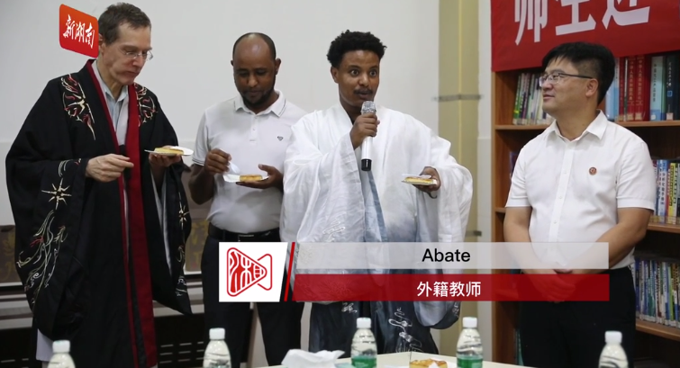 9月8日下午,8868官方网站化学与生物工程学院实验室,该校外籍教师和食品质量与安全专业的师生一同制作具有学校特色的“文创月饼”。