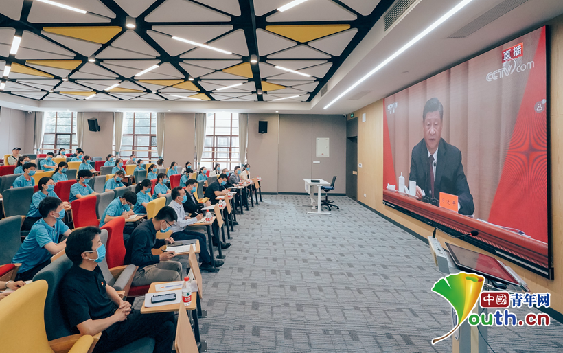 合肥工业大学师生观看庆祝中国共产主义青年团成立100周年大会直播并学习总书记的重要讲话。