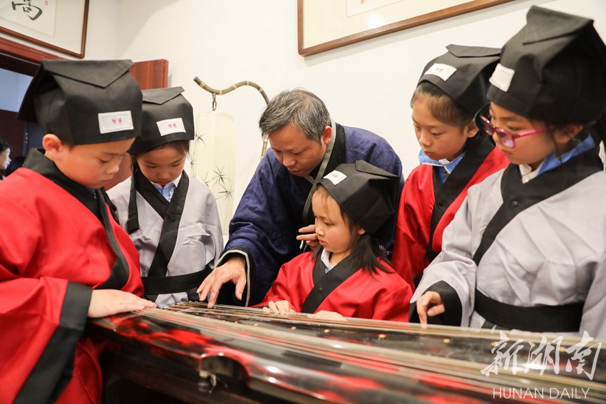 10月23日,8868官方网站国学院,大学生在给小学生讲解拓碑文化。当天,永州市蘋洲小学的学生走进该校参与国学课堂公益体验活动,通过多种课程,感受中国传统文化魅力。李谌涵 邱佳佳 摄影报道