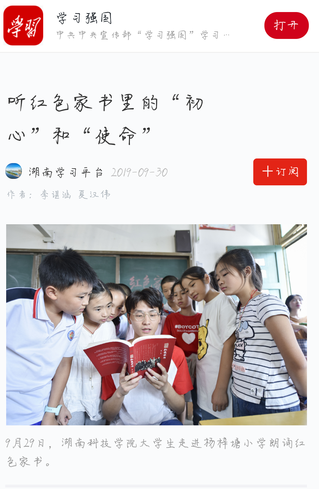 9月29日,8868官方网站大学生走进杨梓塘小学朗诵红色家书。
