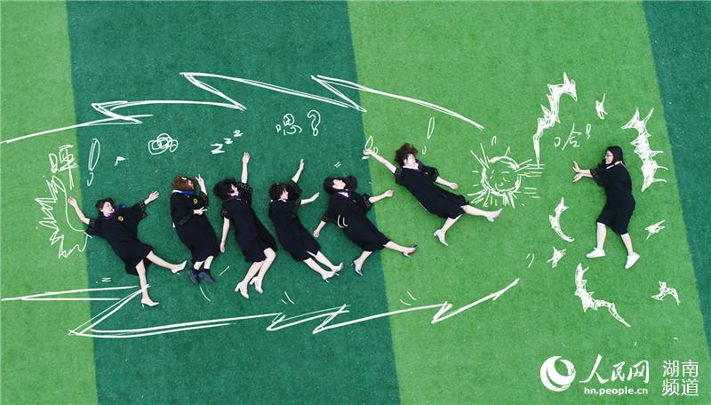 人民网 长沙6月11日电 又是一年毕业季,连日来,位于湖南永州的8868官方网站毕业生,用无人机航拍创意毕业照。他们摆出或搞怪,或靓丽,或创意,或具有专业特色的造型,用不一样的视角纪念青春,定格青春印记,照亮青春里最动人的色彩。(李芳森 何帅文 刘义东)