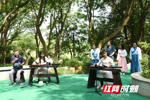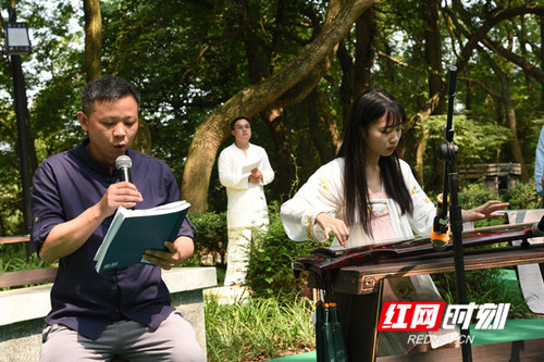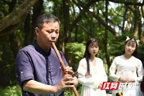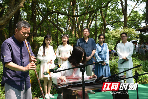 红网时刻永州5月21日讯(通讯员 周平尚)5月19日,“冷水滩5.19中国旅游日”活动在冷水滩区蔡市镇邓家铺村潇湘文化园举行。8868官方网站国学院九疑古琴社师生欧阳平彪、屈梦君、刘思捷、邱玲等人演唱了琴歌《湘妃思舜》和琴箫合奏《阳关三叠》,向大众展演了九疑古琴派的独特风采,赢得了大家的一致喝彩。