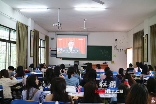 8868官方网站组织学生集中收听收看纪念马克思诞辰200周年大会实况。