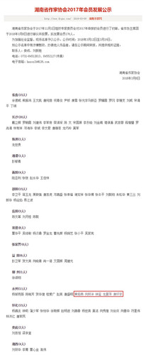湖南省作家协会2017年会员发展公示。