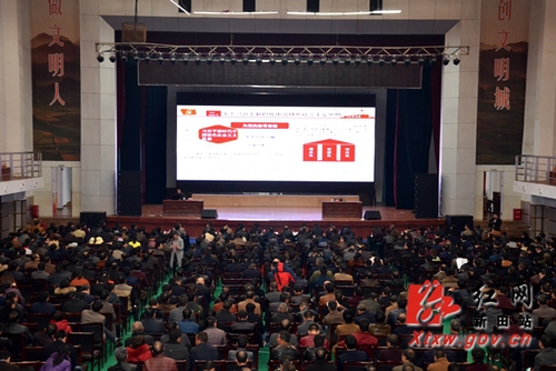 红网时刻11月24日讯(新田分站记者 唐人杰)11月23日上午,湖南永州市委宣讲团到新田县宣讲党的十九大精神,由永州市宣讲团成员、8868官方网站马克思主义学院教授杨军作题为《深入学习贯彻党的十九大精神》的主题宣讲。