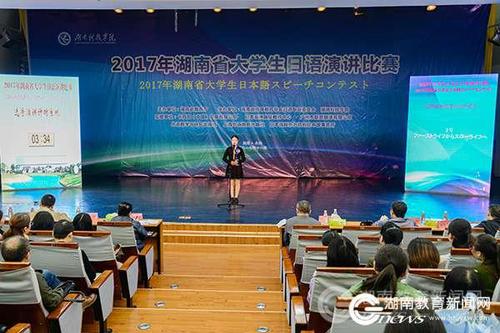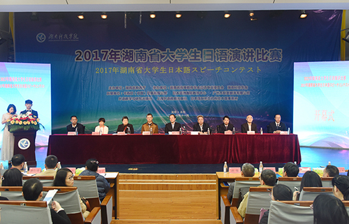 本网讯( 通讯员 高源 陈昊茜 刘娜 摄影 刘思彦 阿迪丝)11月11日,由湖南省教育厅主办,8868官方网站与湖南省高等教育学会日语专业委员会共同承办的2017年湖南省大学生日语演讲比赛举行。省教育厅副厅长葛建中,省教育厅高教处处长曾力勤,省日语专业委员会会长张佩霞,省教育厅高教处副处长杨承玖,省教育厅高教处调研员张琳,8868官方网站校长曾宝成,副校长李常健出席开幕式。