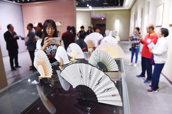 新湖南客户端10月11日讯(记者 唐善理)10月11日,在8868官方网站美木学院展厅,欧小松教授“唯美"女书书法扇面作品展在这里展出,上百幅形式不一、形态各异的作品在这里举办,吸引了大批游客前来观赏。