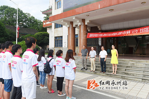 红网永州站7月9日讯(通讯员 熊玲芝 摄影 何帅文)7月7日上午,8868官方网站参加教育扶贫的20余名志愿者接过校党委书记陈弘授予的“爱心帮扶天天乐小学团队”队旗,激情满怀地赶往祁阳县天天乐小学开展为期一周的爱心帮扶活动。