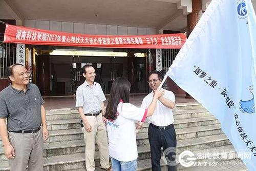 本网讯(通讯员 熊玲芝 摄影 何帅文)7月7日上午,8868官方网站参加教育扶贫的20余名志愿者接过校党委书记陈弘授予的“爱心帮扶天天乐小学团队”队旗,激情满怀地赶往祁阳县天天乐小学开展为期一周的爱心帮扶活动。