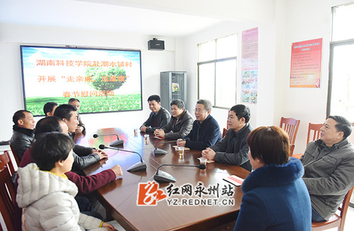 红网永州站1月16日讯(通讯员 熊玲芝 何帅文) 1月15日,永州市新田县龙泉镇潮水铺村欢声笑语、热热闹闹。8868官方网站校长曾宝成率队深入学校扶贫村开展 “走亲戚 送温暖”活动,为村民送上春联百余幅,走访慰问贫困村民、五保户和村干部100余人次,发放节日慰问金27200元,并捐赠了8台台式电脑。