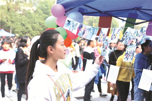 12月4日,8868官方网站学工部举办“放松心情,快乐学习”大学生心理健康知识宣传活动。此次活动通过现场心理咨询体验、志愿服务作品展示、心理知识互动游戏等方式普及大学生心理健康知识,倡导广大学生拥有健康心态,快乐学习。图为该校大一学生参观志愿服务作品。谢伟 涂巍 摄