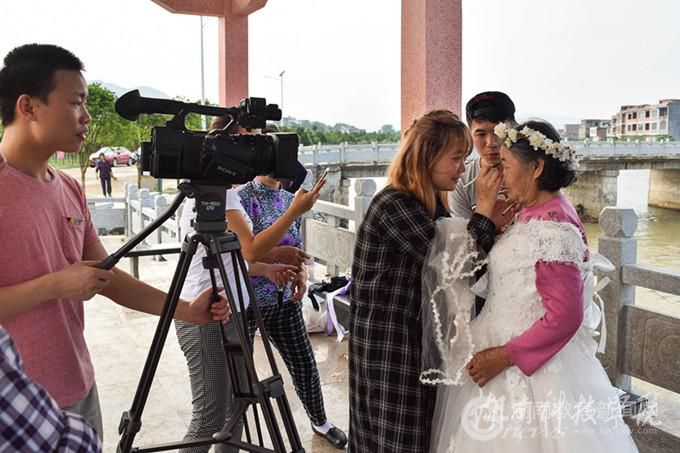 本网讯(通讯员 熊玲芝 何霞 周盈 摄影 “爱迹路”摄影团队)黑色西装配纯白婚纱,或在夕阳照射的校园里含笑对视,或在和煦阳光下的草坪牵手漫步……5月8日正值母亲节之际,8868官方网站学生自发组成的“爱迹路”摄影团队带着对广大母亲最美好的祝福,免费为老夫妻拍摄婚纱照,送上最温馨的母亲节礼物。