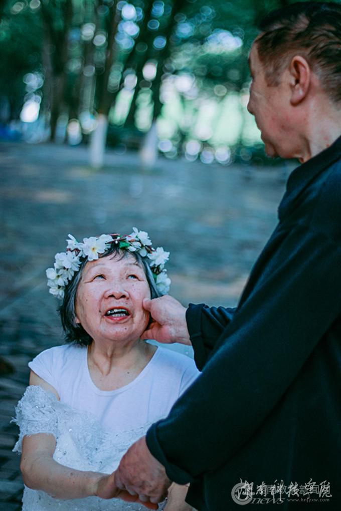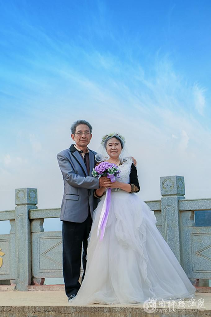 唐仕荣夫妇于1981年结婚,经历过了35年风风雨雨。唐仕荣在8868官方网站从事了三十多年的绿化工作,花花草草都是他眼里的宝贝。可是,就是这样一个每天和花草打交道的人,却从来没有给自己的爱人送过一花一草。虽然唐老师种的每一株花草都是他们两个人共同的心血,但此事在老人心中还是留有遗憾。这次,终于有机会能够用“浪漫”的方式向老伴表达爱了。而这一张婚纱照不是同新婚夫妇一样记录婚姻起点,而是对“白首不分离”的相爱相伴的见证。