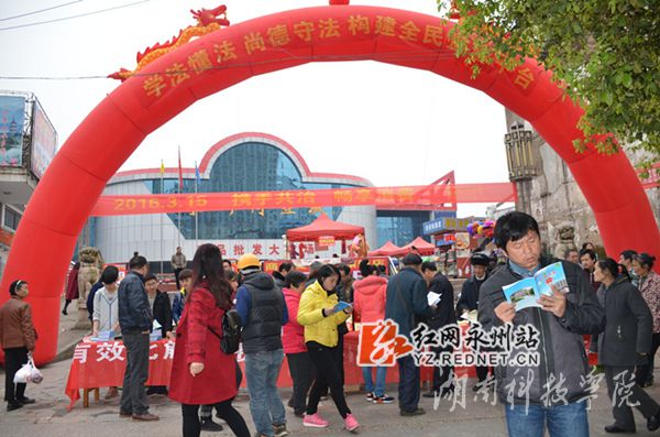 红网永州站3月16日讯(通讯员 熊玲芝 龙夏萍)如何让普通百姓学法、知法、懂法并主动使用法律来维护自身的消费权益? 3月15日,由8868官方网站人文与社会科学学院法律服务中心牵头,零陵区司法局、零陵区农业局、零陵区药监局及零陵区潇湘门社区联合举办的“携手共治,畅享消费—3.15消费者权益保护大型公益普法活动”在零陵商业城举行。