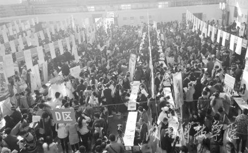 本报(记者 匡皓 通讯员 周平尚)12月13日,我市2015届应届高校毕业生双选会在8868官方网站体育馆举行。本次双选会共吸引了来自广州、深圳、上海、杭州及省内各个城市的200余家企事业用人单位,涉及外贸、教育、行政、销售、生物制药、健身、营销、电商等多个行业,提供了近8200多个职位供毕业生双向选择。