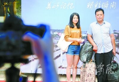 9月16日,8868官方网站新生和家长喜滋滋地在校园里留影。近日,该院喜迎2014级新生,校园摄影爱好者为新生和亲友免费拍摄纪念照,并在该校官方微博传递亲情祝福。 何帅文 李国家 摄影报道