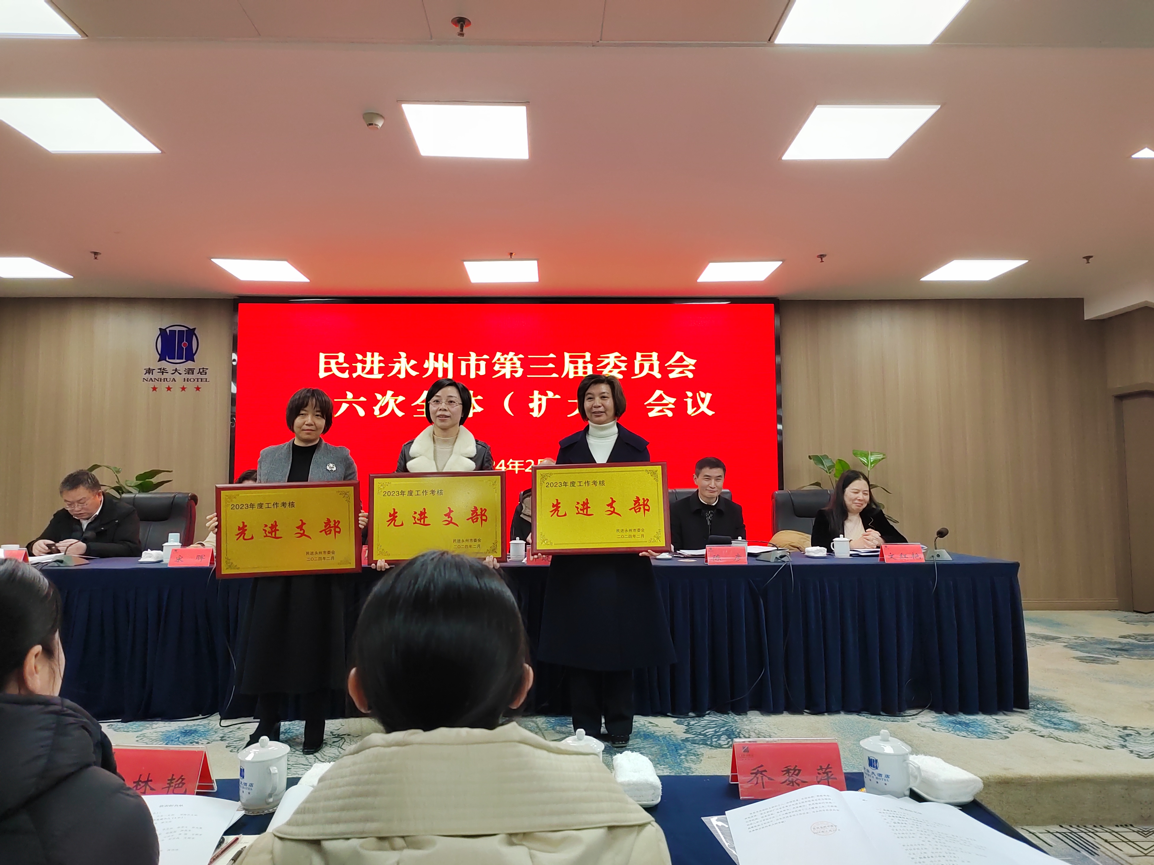 本网讯(通讯员 李焕品)2月29日上午,民进永州市委会三届六次全体(扩大)会议在冷水滩举行。民进8868官方网站支部在2023年度市委会支部考核中位居第一,被评为先进支部。何丽萍被评为社情民意信息工作先进个人,李焕品被评为优秀会务工作者,王豪才、包红光、李小雨、蒋玮玮被评为优秀会员,包红光作为优秀代表发言。