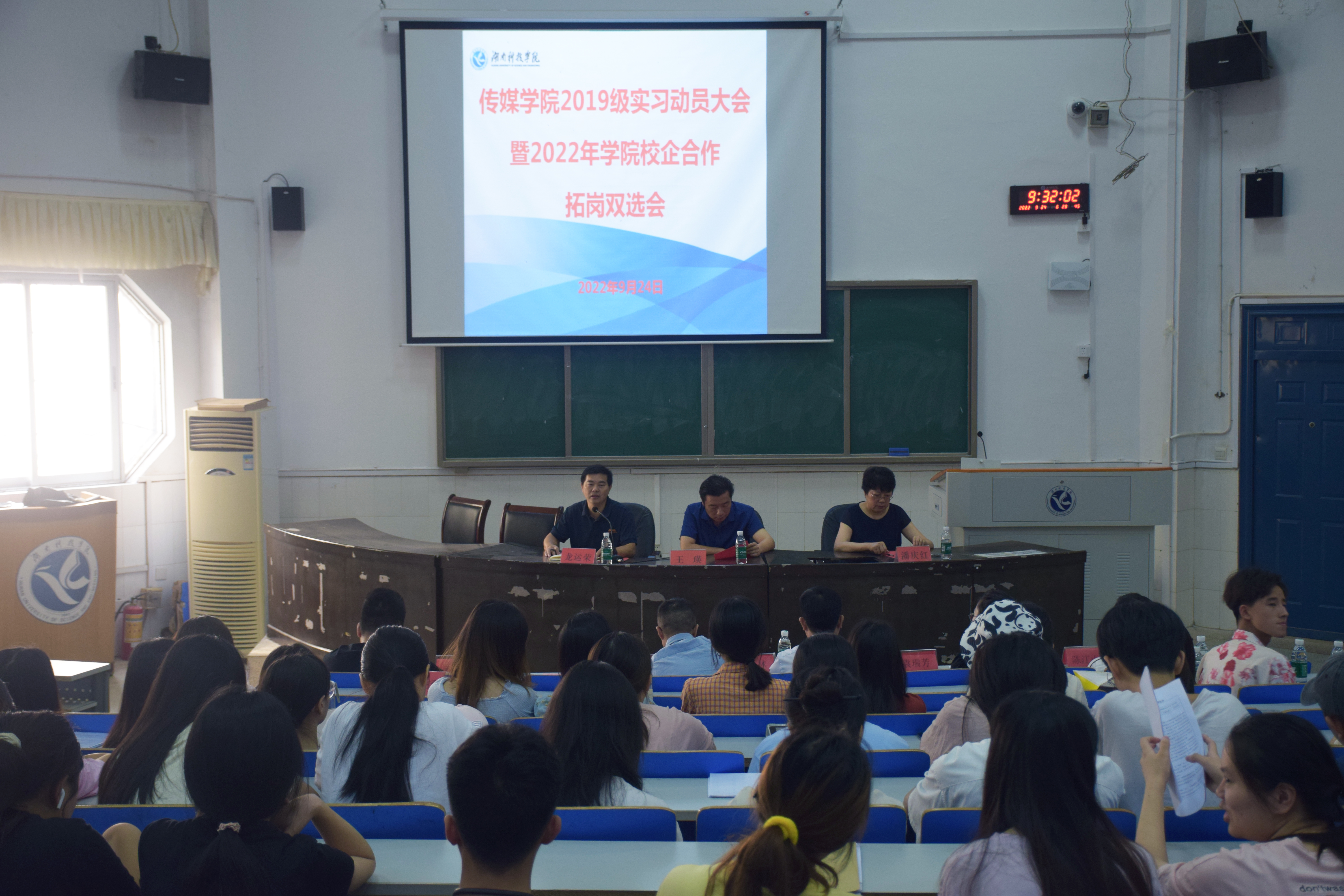 永州市广播电视台(永州市融媒体中心)、永州日报新媒体部、嘉磊传媒有限公司运营部、中广天择传媒股份有限公司相关工作人员围绕企业文化、企业特色、实习岗位介绍、福利待遇等学生关心的事宜进行了现场宣讲,对有意向去实习的学生进行了现场面试。