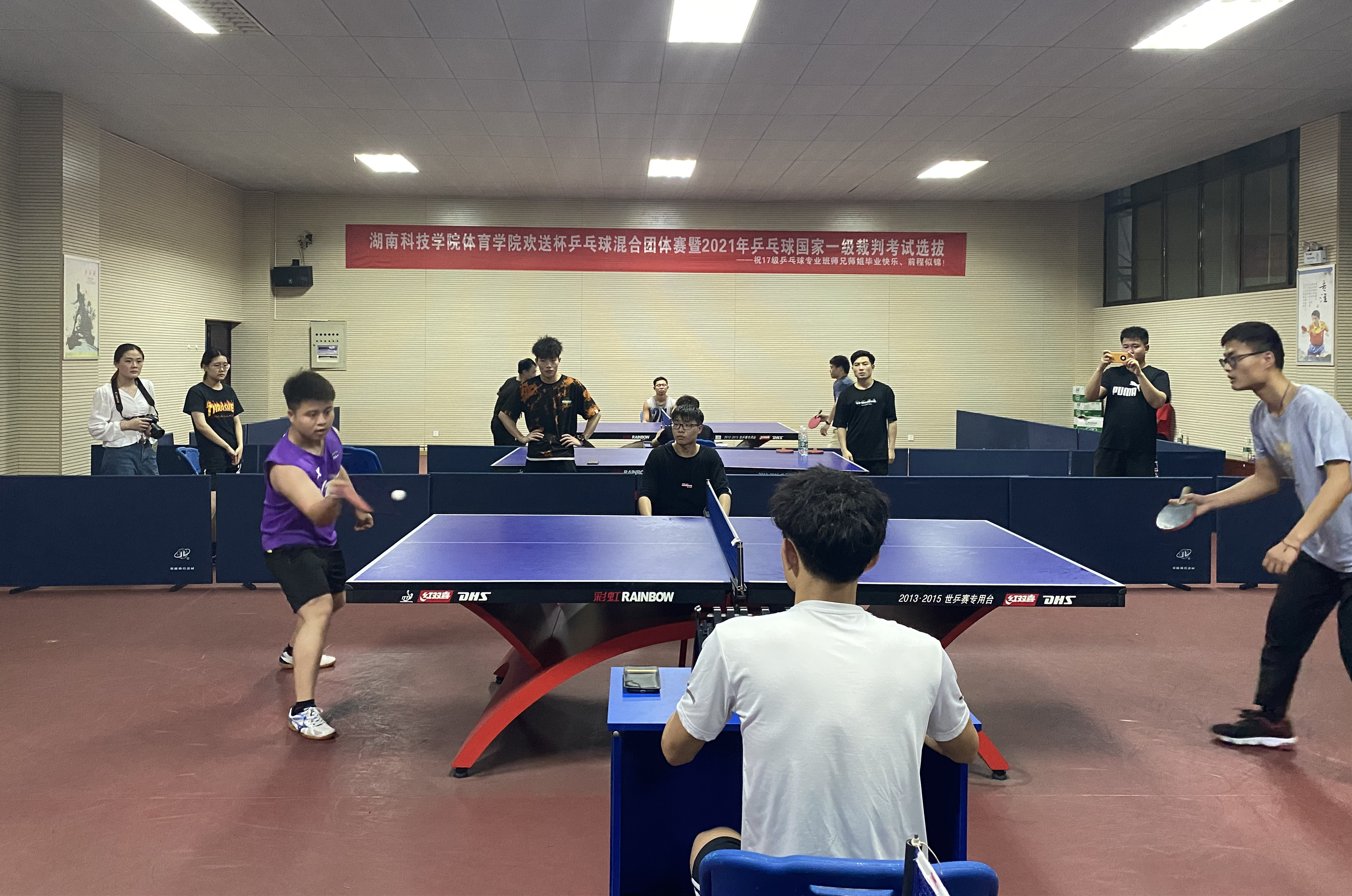 本网讯 5月14—15日8868官方网站体育学院举办首届“欢送杯”乒乓球混合团体赛。