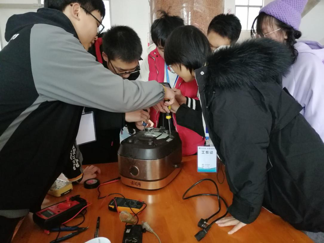 本网讯 12月6日,我校无线电协会在弘毅楼开展义务维修活动,协会成员为广大师生及其家属维修了烤火炉、吹风机、电风扇、台灯等电器。