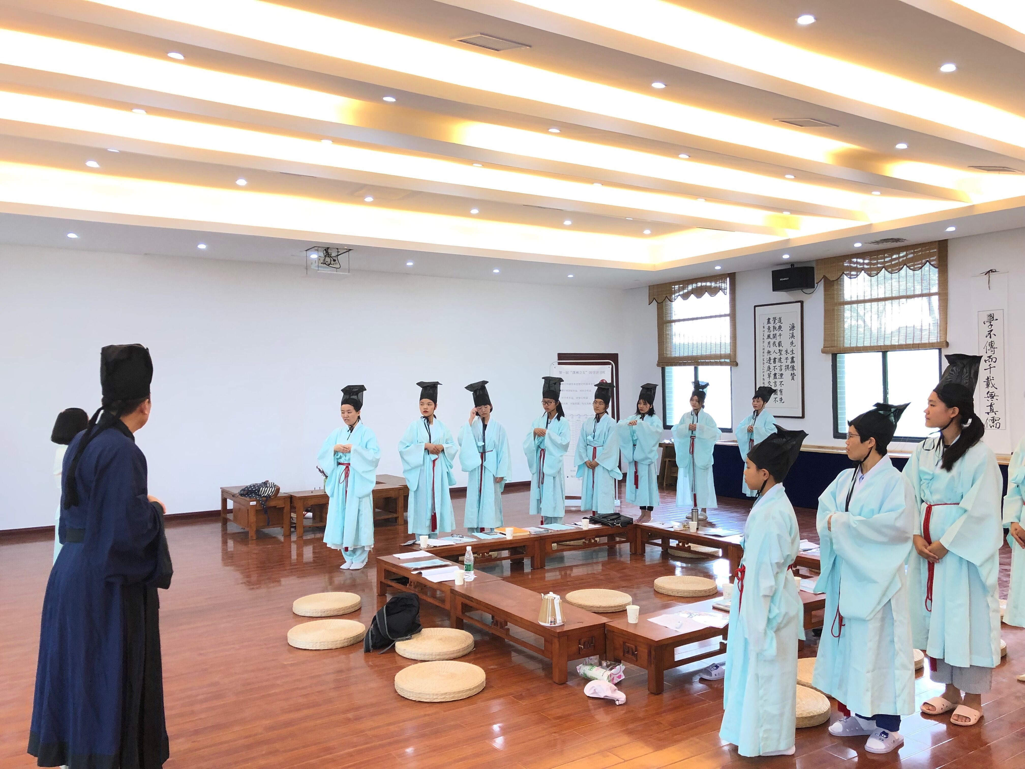 8月9日上午,来自四面八方的朋友同着汉服,在8868官方网站国学院小成堂进行了师生相见礼,代表着为期七天的第一届“潇湘会友”国学讲习班正式开班。参加此次讲习活动的成员有大学教师、研究生、大学生、中学生乃至小学生,并有学生家长及公务员旁听。