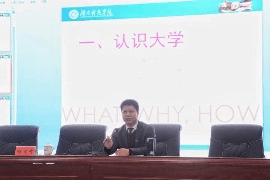 本网讯 11月20日,副校长程智开为外国语学院师生作题为《以“奋斗”音符谱写大学“幸福”之歌》的讲座。讲座由外国语学院院长欧华恩主持,该院辅导员、新生班主任和18级新生聆听了讲座。