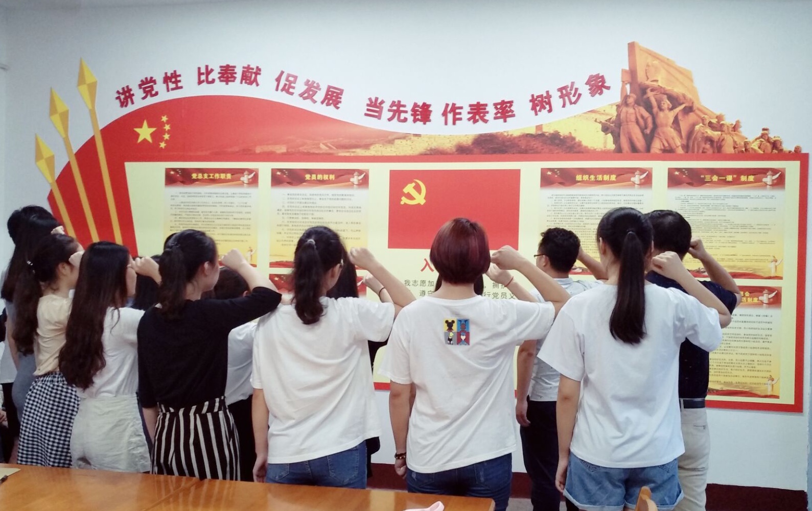 活动在响亮的宣誓声中拉开帷幕。英语日语专业学生联合党支部书记杜俊杰带领2018年上期发展的14名预备党员面向鲜红的党旗庄严宣誓。随后,唐朝继以“不忘党的初心,牢记党的使命”为主题为大家讲了一堂生动而又深刻的党课。他重点阐述了党的初心和使命“是什么?”“为什么?”“怎样践行?”。他指出,新时代的青年学子应该自觉地以习近平新时代中国特色社会主义思想武装头脑,应有“舍我其谁”的勇气和“非我莫谁”的能力,这样的“勇气”和“能力”是“不忘初心、牢记使命”的判断标准。