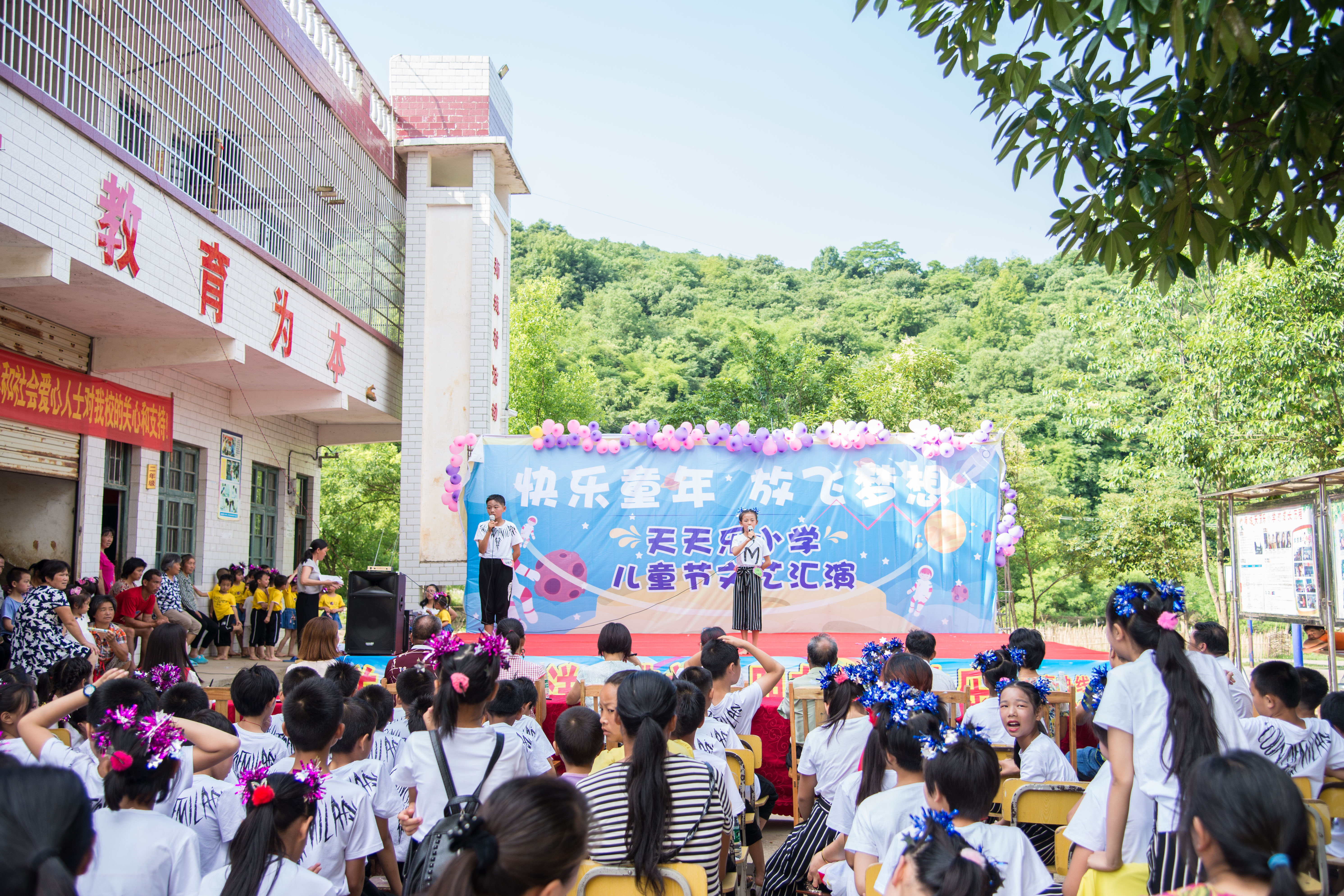 本网讯 5月26日上午,传媒学院青年志愿者奔赴祁阳县狮城天天乐小学开展“欢乐童年,放飞梦想”主题爱心活动,与该校学生欢庆六一。