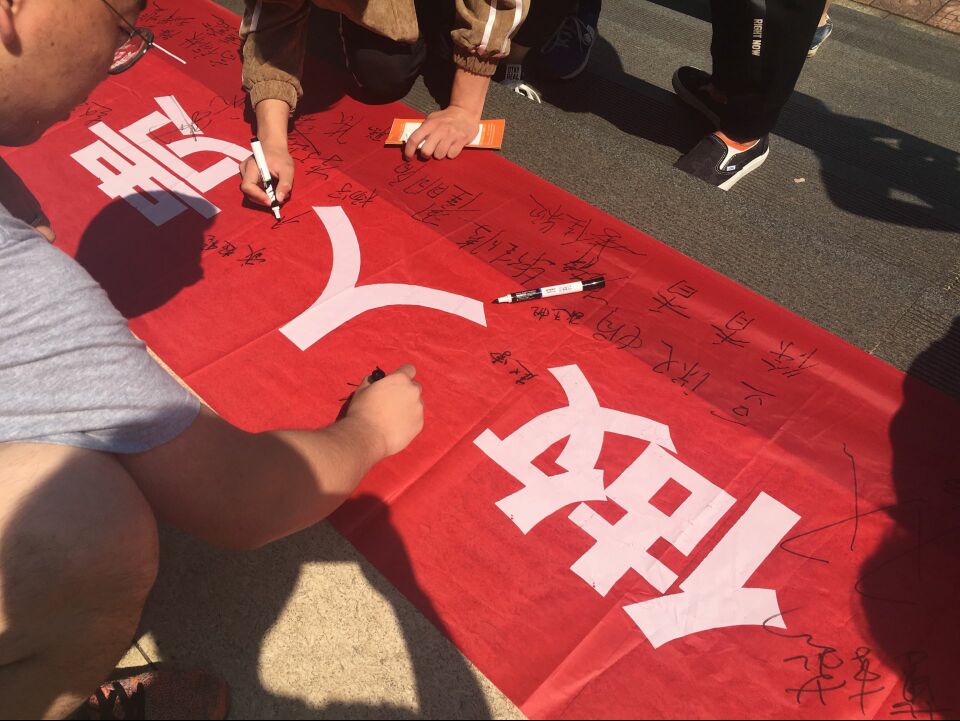本网讯  55日上午,音舞学院在尚美楼前开展了主题为“读书重在明理,做人贵在诚信”的签名活动,同学们积极响应,踊跃签名。改院党总支书记廖宁杰、副书记蒋磊及全体辅导员出席本次活动。