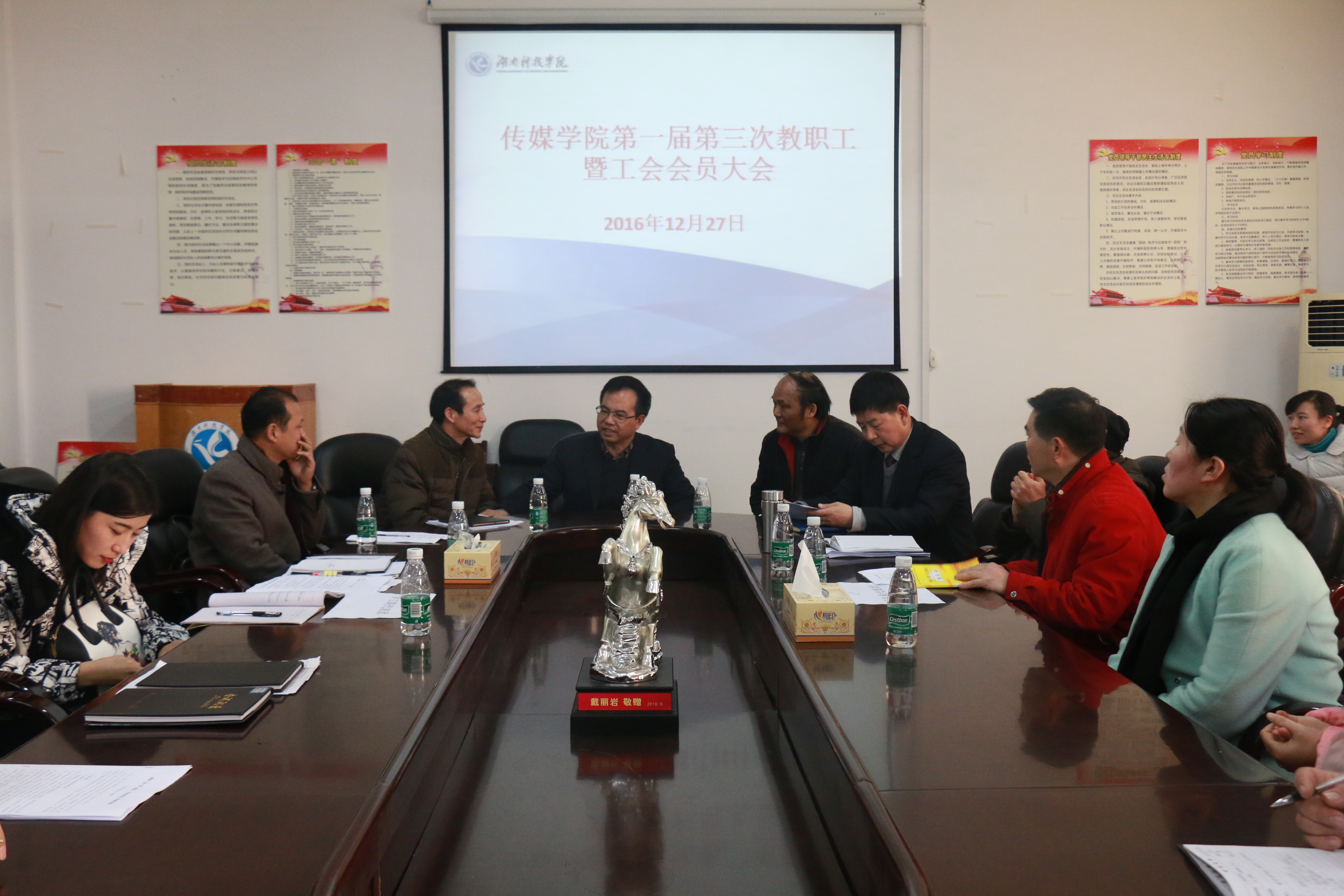 本网讯 12月27日下午,传媒学院召开第一届第三次教代会暨工会会员大会。校党委书记陈弘出席并讲话党政办主任杨能山传媒学院院长杨增和传媒学院党总支书记蒋诗堂出席