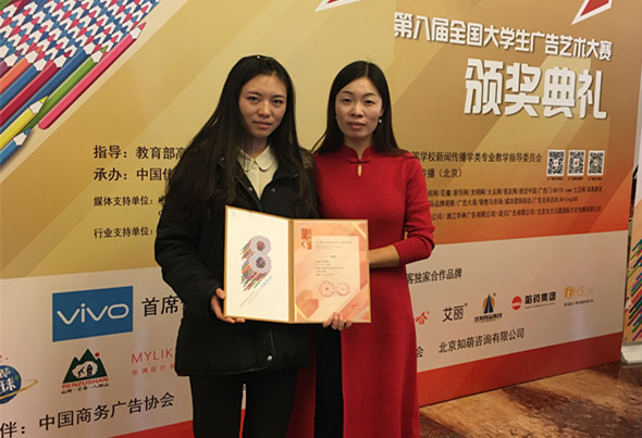 本网讯 11月27日,第八届全国大学生广告艺术大赛颁奖典礼在全国政协礼堂隆重举办。我校美术与艺术设计学院获得全国三等奖一项,全国优秀奖四项。