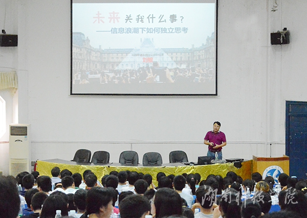 刘鲲围绕“未来关我什么事-信息浪潮下如何思考”这一主题,与新生进行了分享和交流。刘鲲首先提出了两个问题“你会怎样去选择度过你的大学四年?我们会面临许多选择,你该怎样走好你的大学之路?”。随后他从通信技术的现状到发展和演变、通信信息时代的未来、大学生如何面对今天海量信息的冲击、如何规避信息盲流、养成良好的阅读习惯等方面带领新生去寻找这两个问题的解决方法,他建议大一新生要学好专业知识、保持怀疑精神、乐观面对挫折、有效过滤信息,形成独立思考的能力,更好地度过大学四年。