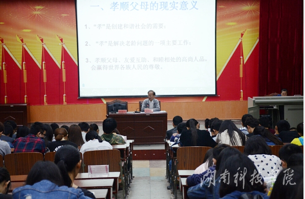 本网讯(通讯员 龙夏萍)5月20日上午,国内知名孝文化专家、优秀校友蒋经仟应邀在明德楼报告厅作题为“弘扬孝道文化,构建和谐社会”的讲座,该院部分老师及学生聆听此次讲座。