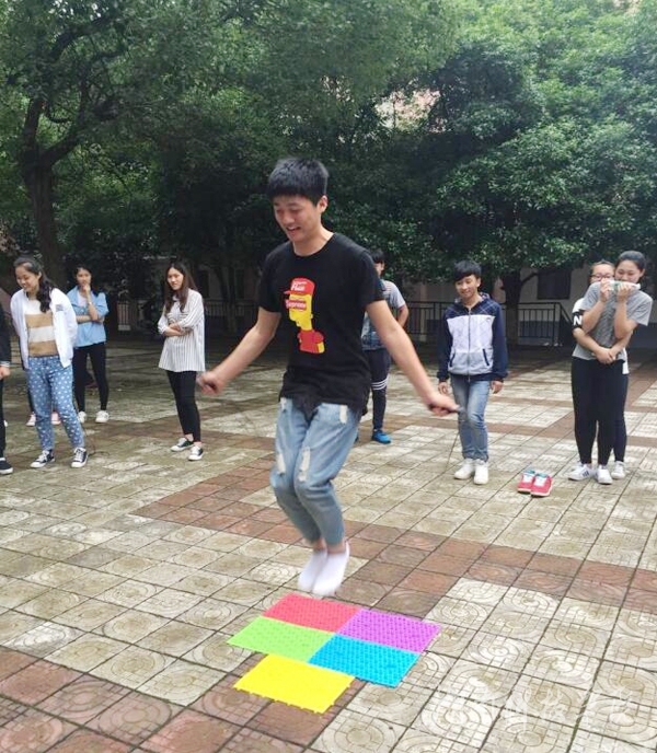 比赛的项目分为团体赛、单人后跳、指压板跳绳、两分钟两人单腿跳等。游戏中,每位同学都拼尽全力积极参与,有些同学甚至赤脚上阵,努力为班级争夺高分。团体赛中,大家共同配合,体现出同学们之间的默契和信任。
