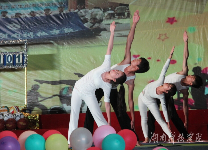 魅力四射的拉丁舞、劲爆火辣的爵士舞、温婉含蓄的舞韵瑜伽将现场的气氛推向一个又一个顶点,青春洋溢的动感单车将晚会现场推向了高潮,现场师生都跟随节奏一起舞动。舞台上,大家或以柔美的舞姿,展示出娴熟的技巧和传神的舞台表现力;或将体操与舞蹈融为一体,或是开合有序、刚柔相济,或豪迈奔放、气势磅礴,博得在场师生掌声阵阵。