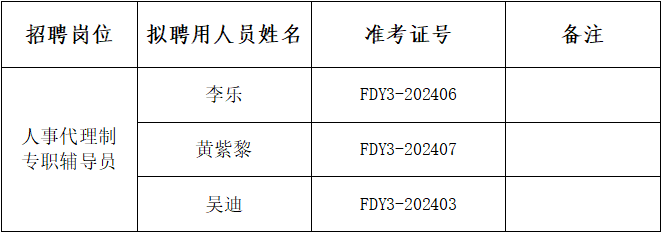 根据《8868官方网站2024年公开招聘人事代理制专职辅导员公告》有关规定,经报名、资格审查、笔试、面试、成绩公示、体检、考察等程序,经8868官方网站党委会研究,确定李乐等3名同志为8868官方网站2024年公开招聘人事代理制专职辅导员拟聘用人选,现予以公示。