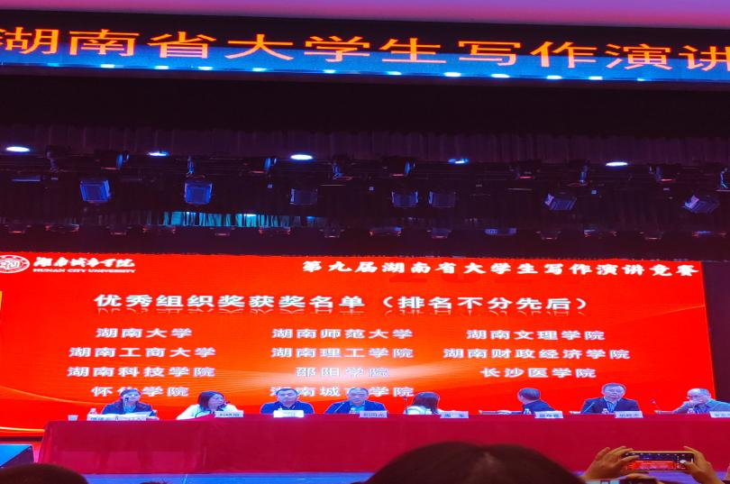 (通讯员姚蕊)近日,第九届湖南省大学生写作演讲竞赛在湖南城市学院落下帷幕。经笔试、面试,主题演讲、即兴演讲,我校文法学子共有4名选手获奖,其中肖晶同学荣获文学评论组二等奖,姚蕊、李书琴分别荣获三等奖,李梓荣同学获演讲组三等奖,学校荣获优秀组织奖。