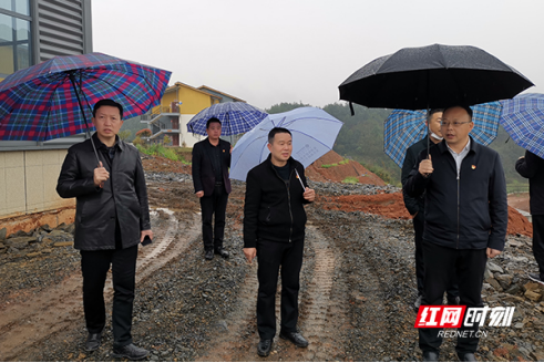 安化县委书记刘勇会(右一)调研疫情防控工作