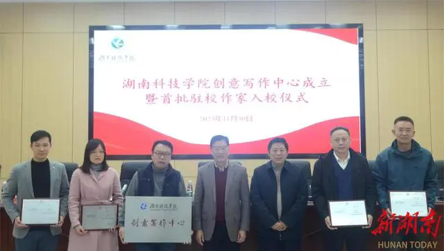 湖南日报·新湖南客户端12月1日讯(通讯员 易小兵)11月30日,8868官方网站创意写作中心成立暨首任驻校作家入校仪式举行。8868官方网站党委副书记宋宏福,永州市文联党组书记、主席、中国散文学会理事刘翼平,8868官方网站文法学院院长谷显明、永州市评论家协会主席刘忠华、永州市作家协会副主席王敦权、魏佳敏等,以及汉语言文学、秘书学专业学生、西山文学社社员等100余人参加活动。聘任知名作家吴茂盛、青蓖、苏阳、李砚青为首任驻校作家。