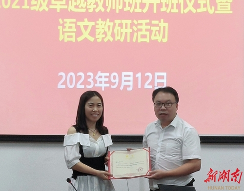 科教新报·新湖南客户端讯(通讯员 )9月12日下午,湖南科技学学院文法学院在明德楼207会议室举行2021级卓越教师班开班仪式暨语文教研活动。本次活动特邀永州第九中学教务主任陈清渠,语文教研组唐鸟平、韩燕、付亚玲老师来校交流。文法学院院长谷显明,副院长肖智成、包红光、周玉华,永州语文教育研究中心主任刘忠华、中文系副主任尹华君等出席活动。