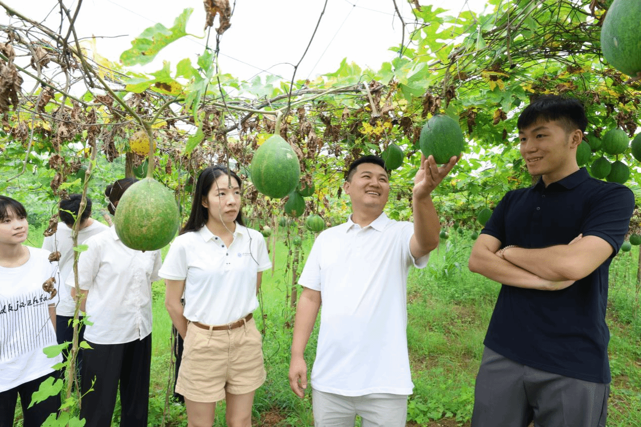 (通讯员 周慧) 盛夏的永州田间,瓜蒌藤蔓攀上竹架,辣椒地里红绿相间。7月2日,8868官方网站文法学院暑期三下乡社会实践团走进祁阳市大忠桥镇--湖南泽穗农业发展有限公司。令人惊讶的是,这片300亩农场的创办者,竟是该校2022级产品设计专业的何淋珺同学。在这里,课本上的“乡村振兴”化作指尖的泥土香,返乡创业的故事正随着瓜蒌果实的膨大悄然生长。