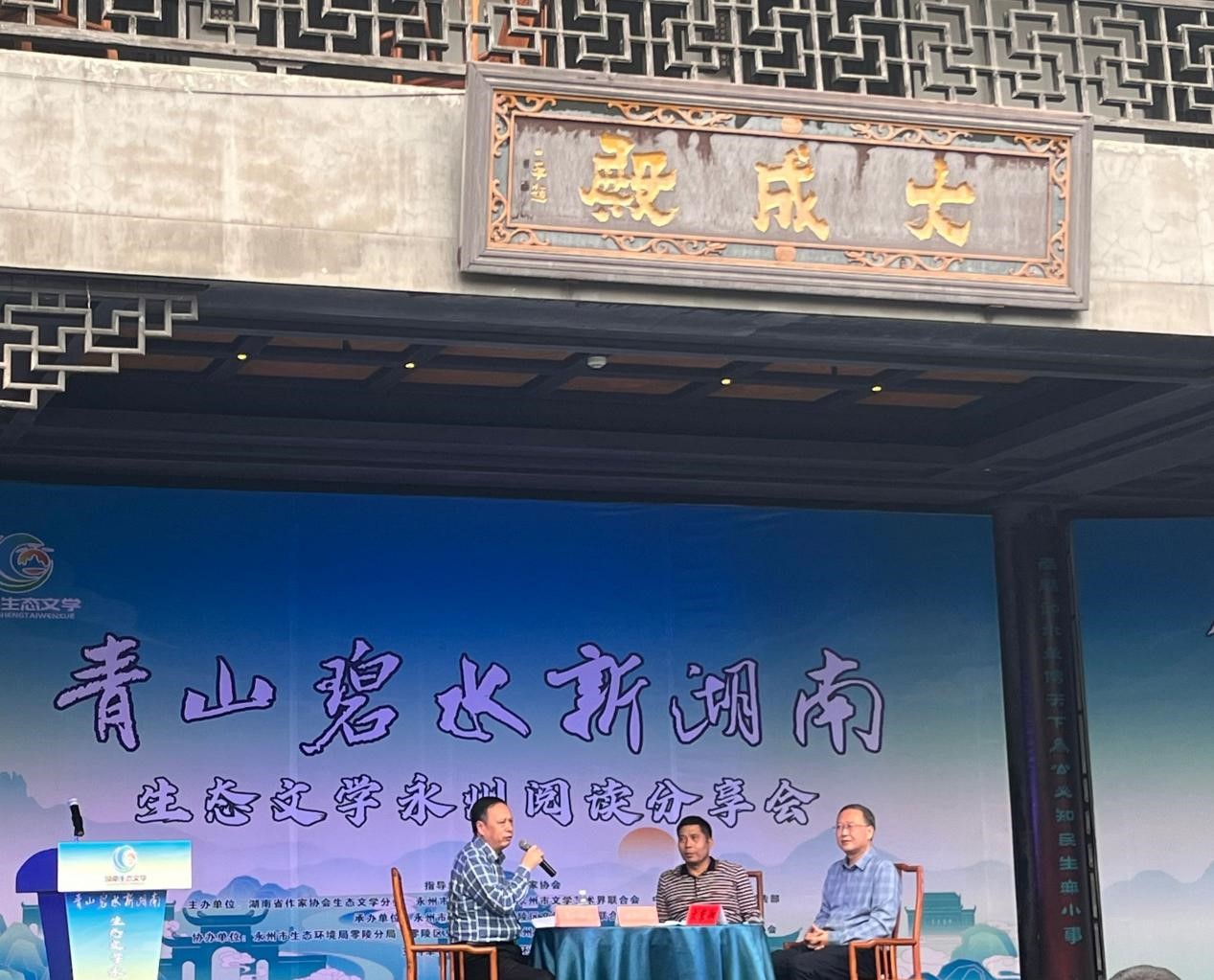 (通讯员朱檑)10月21日下午,“湘江源头·千年鸟道”——湖南省作家协会生态文学分会2024湖南(永州)生态文学周暨生态文学阅读分享会第一场“青山碧水新湖南”生态文学阅读分享会活动,在位于潇水与湘水合流处的萍洲书院内举行。本次分享会以“千山诗文地,锦绣潇湘缘”为题,共同探讨“文学在生态文明建设中的使命担当”,共同分享黄亮斌、文紫湘两位优秀作家的生态文学代表作。