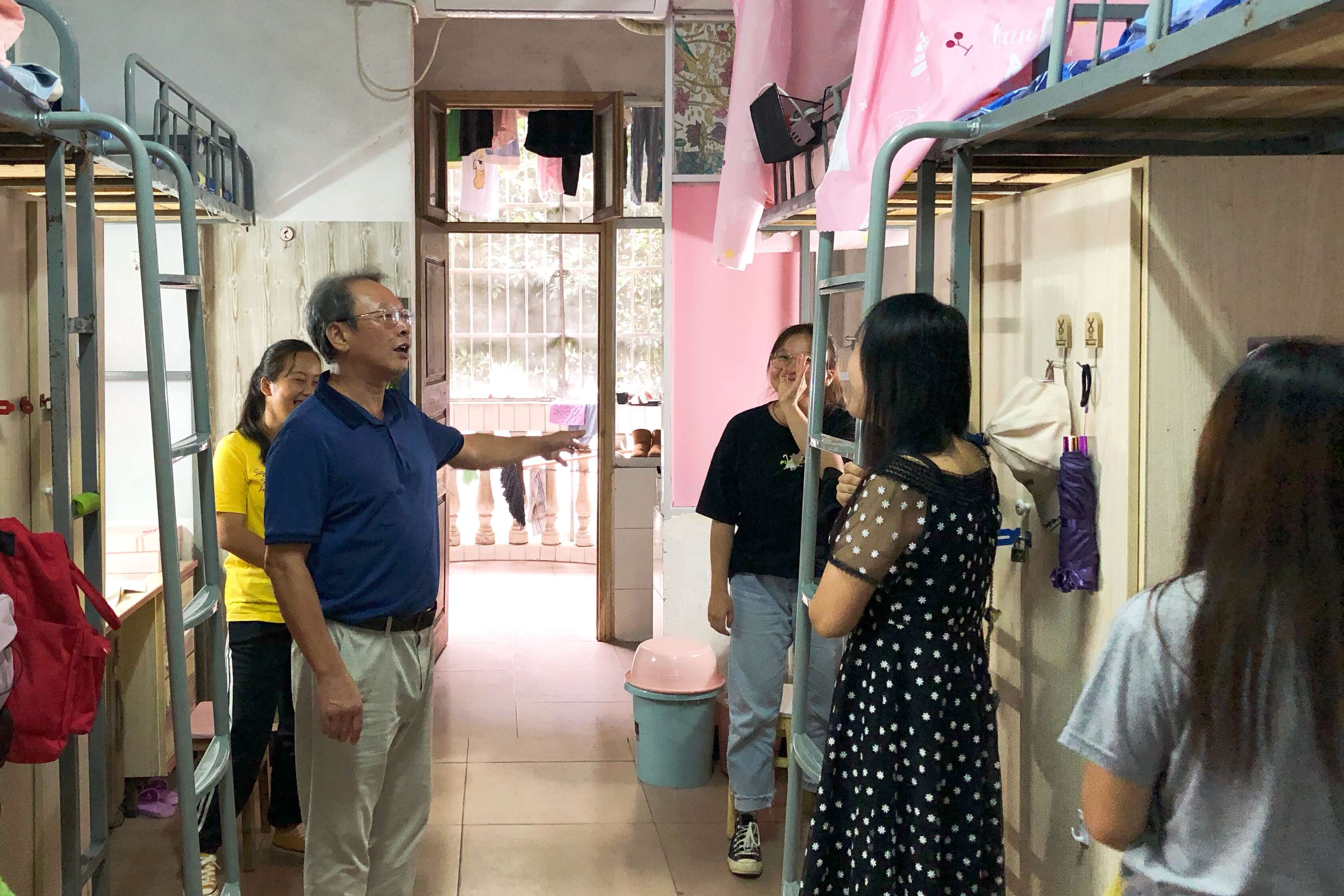 本网迅(通讯员李政锴)9月6日下午,外国语学院院长欧华恩、党总支书记雷树彬、党总支副书记罗晶带领辅导员、班主任老师走访了学生宿舍。 每走进一间宿舍,学院领导、老师都亲切地与学生进行交谈,了解他们疫情期间的线上学习、生活情况及毕业班学生的考研情况,耐心地解答同学们提出的各类问题。提醒学生注意用电安全、财产安全、出行安全、食品安全、谨防各种诈骗。欧华恩院长更是细心地叮嘱学生注意天气变化,加强体育锻炼。要求学生做好期末考试的复习准备,鼓励学生以饱满的精神状态投入到新学期的学习生活中去。