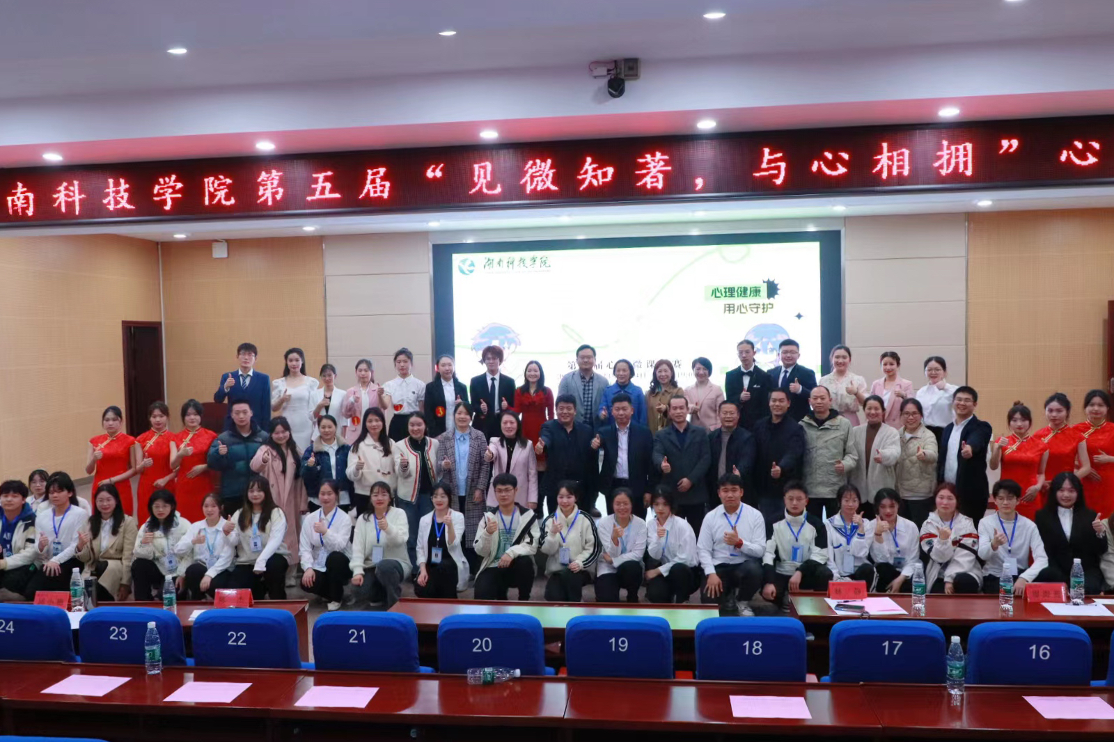 本网讯 4月24日晚,8868官方网站第五届心理微课决赛在潇湘大讲堂举办。本次比赛特邀请了心理学专家中南大学博士生导师胡凯教授、湖南师范大学博士生导师陈杰教授以及我校林静教授、邱小艳教授和廖海燕副教授担任评委。应邀出席的嘉宾有学生工作部部长谷利民、学生工作部副部长胡敏辉,各学院党总支副书记和老师、学生代表700余人现场观摩比赛。