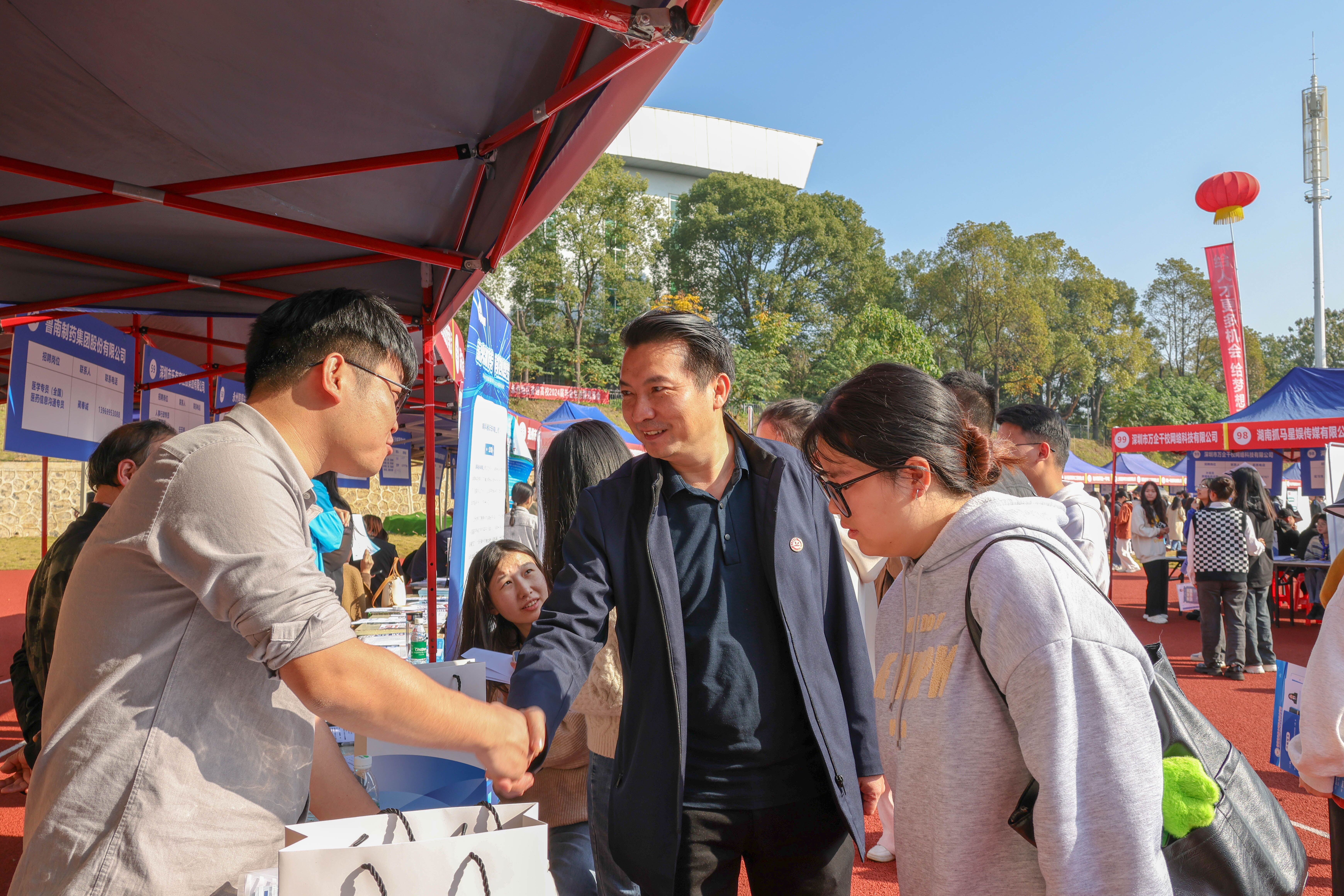 (通讯员谭俊杰 王素芳)为全面贯彻落实党中央、国务院“稳就业”“保就业”决策部署,更好为毕业生搭建求职平台,促进我校2024届毕业生高质量就业,2023年11月28日上午,永州地区普通高校2024届毕业生供需见面会在8868官方网站田径场举行。外国语学院党总支书记唐君、辅导员王素芳带领2024届毕业生参加招聘会。