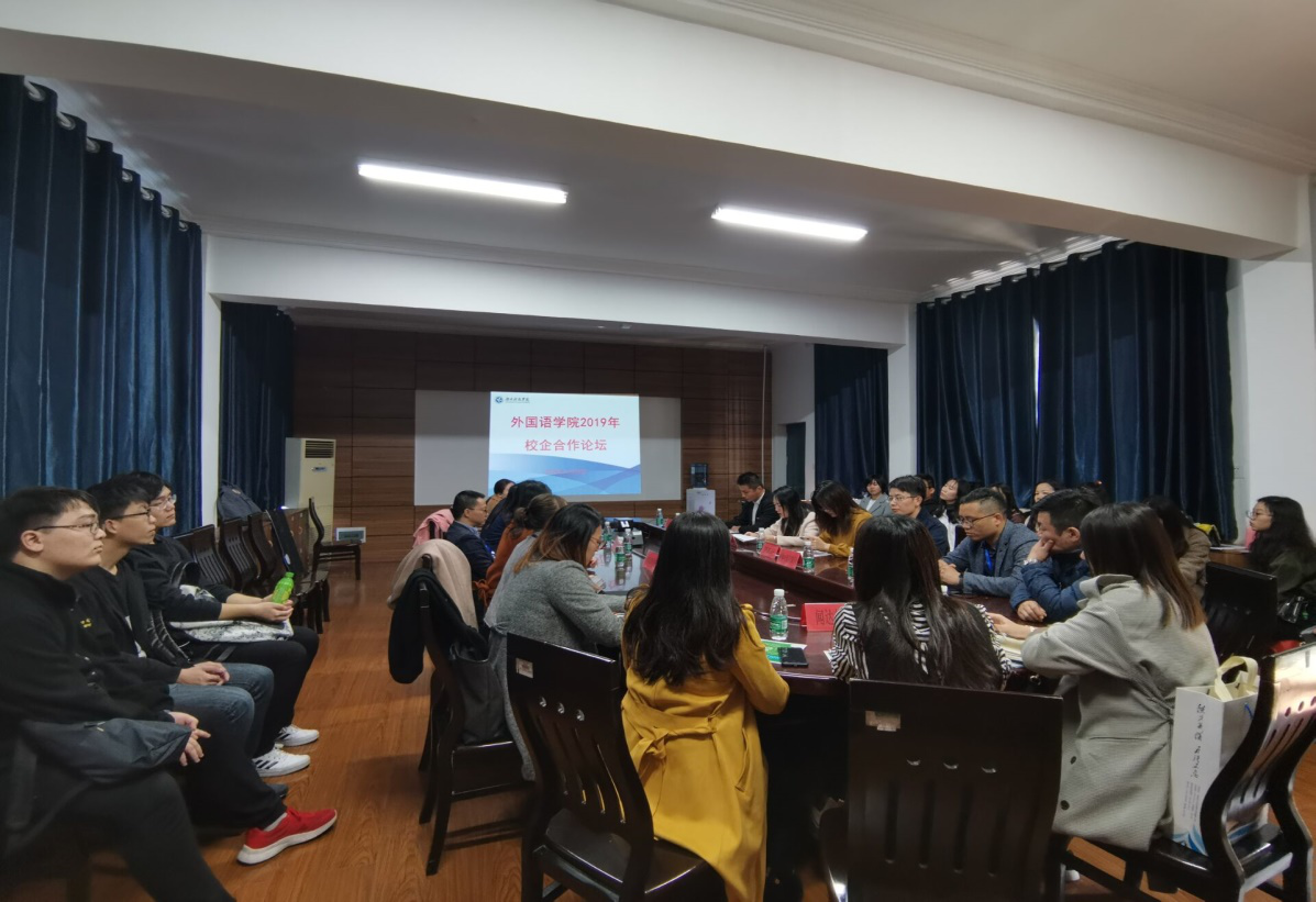 本网讯(通讯员 陈丽菲)为推动我院实施实践创新教育,更好的服务学生的求职创业工作,促进产、教、研相融合。8868官方网站外国语学院于11月23日下午1:00在博雅楼202会议室召开了外国语学院2019年校企合作论坛。