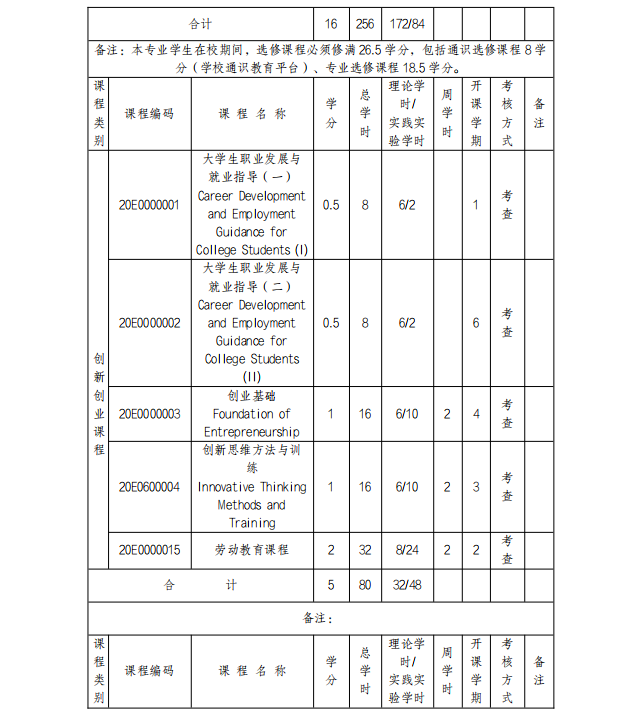 注:统计实践教学环节占总学时的比例时,含集中性实践教学环节,单设实验课、课 内上机及实验学时(集中性实践教学环节按每周 16 学时计)。