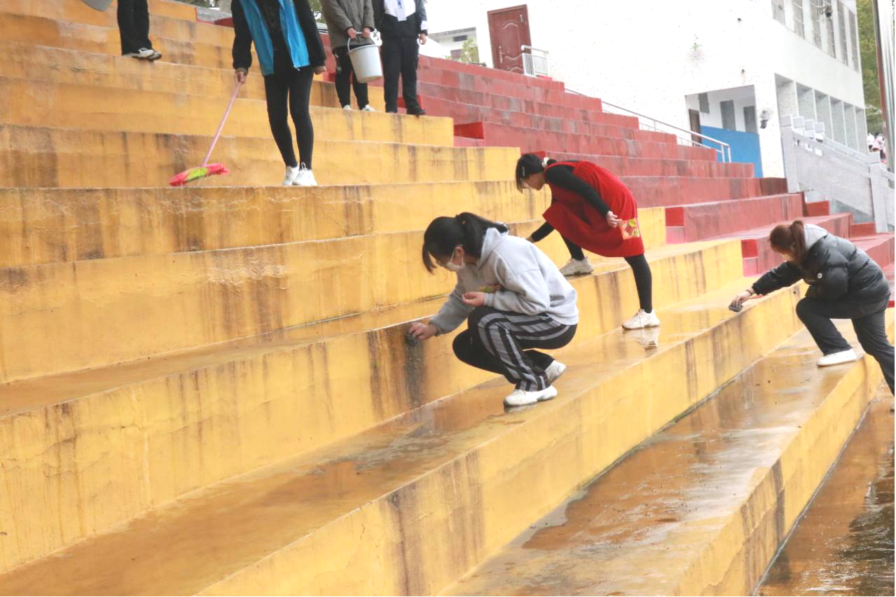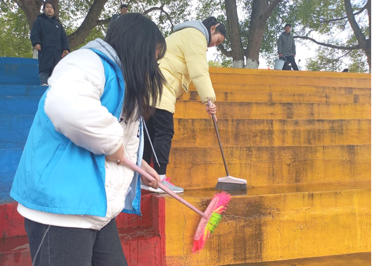 志愿者们首先在博雅楼集合拍照,随后按照工作人员的分工,到指定区域对垃圾和污垢进行处理,同学们热情洋溢,每个人都手提着一个垃圾袋,拿着清洁球与水桶,展现出积极阳光的精神状态和不怕脏不怕累的优秀品质。看到洁净的环境,志愿者们露出了灿烂的笑容。他们高兴地说:“虽然有点累,可是很开心,能为美化校园做点力所能及的事,感到非常自豪,以后还会多多参加这样的活动”。