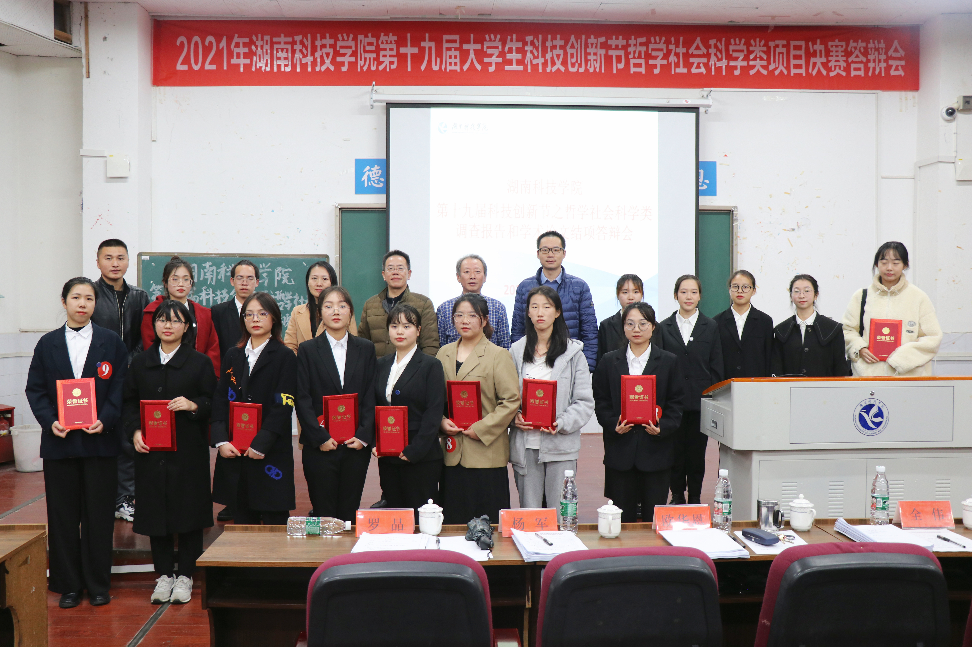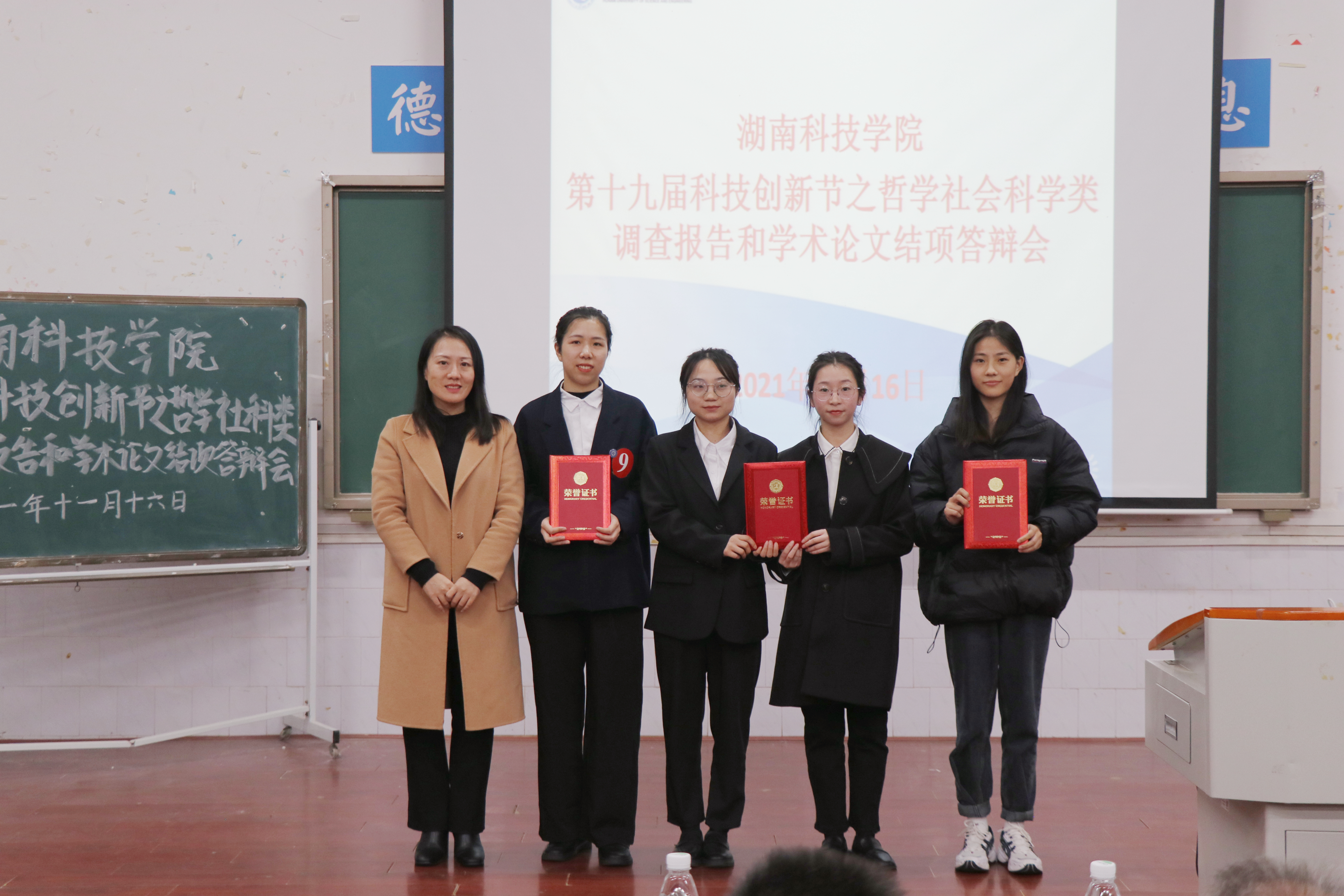 最终张静怡小组《虚拟现实技术融入党史教育教学路径研究》荣获一等奖;冯慧慧小组《“红军长征过永州”革命遗址调查与数字化保护研究》和肖佳雨小组《基于FIF口语训练系统的英语专业学生英语口语学习现状调查及学习策略研究》荣获二等奖;吴曼小组《8868官方网站大学生志愿服务调查与研究》、王梅香小组《空间与史脉:大湘南红色旅游资源开发策略研究》和戴宏展小组《产业转移对区域经济增长、城乡发展差距的影响分析——基于湖南省1988年至2018年的数据实证》荣获三等奖;黄莉小组《直播经济助力乡村振兴研究——以安化黑茶为例》、周杰小组《红色文旅融合助推湘赣边革命老区乡村振兴》和李梦然小组《党史学习媒介使用与价值认同的调查研究——以永州地方高校为例》荣获优胜奖。