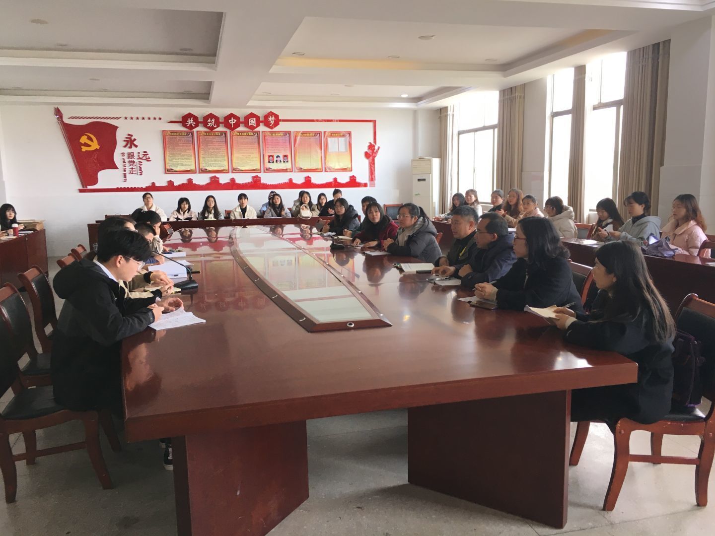 本网讯(通讯员 刘颖欢)为更好地开展实习生指导工作,提高实习成效,11月23日上午,8868官方网站学外国语学院彭宁红副院长、黄昊文副院长、英语系主任翟晓丽和辅导员王素芳一行来到永州工商职业技术学校听了实习生颜震的汇报课。随后,在综合楼会议厅开展了2018级本科教育实习检查座谈会,与该校领导就实习生工作进行了深入交流座谈。永州市工商职业中等专业学校杨林海副校长、教务处眭光明主任、英语组组长刘青梅老师等英语教育实习相关的指导老师出席了座谈会。会议由王素芳主持。